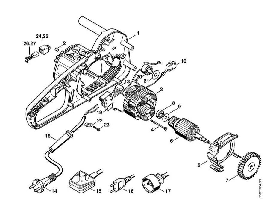 1 | Электродвигатель | E 180 C | Электропила STIHL | Запчасти по России | Сервисное обслуживание