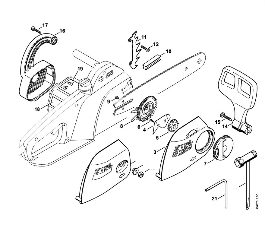 4 | Быстродействующее натяжное устройство цепи | E 180 C | Электропила STIHL | Запчасти по России | Сервисное обслуживание