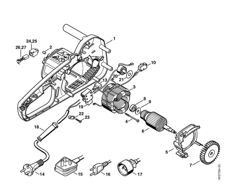 1 | Электродвигатель | E 140 | Электропила STIHL | Запчасти по России | Сервисное обслуживание