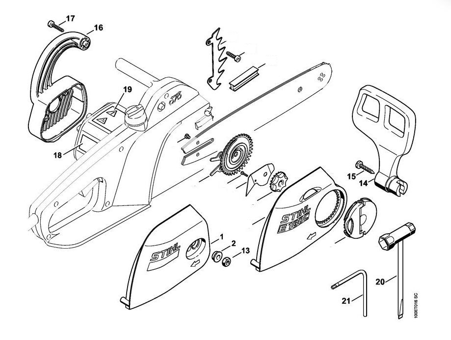 4 | Быстродействующее натяжное устройство цепи | E 140 | Электропила STIHL | Запчасти по России | Сервисное обслуживание