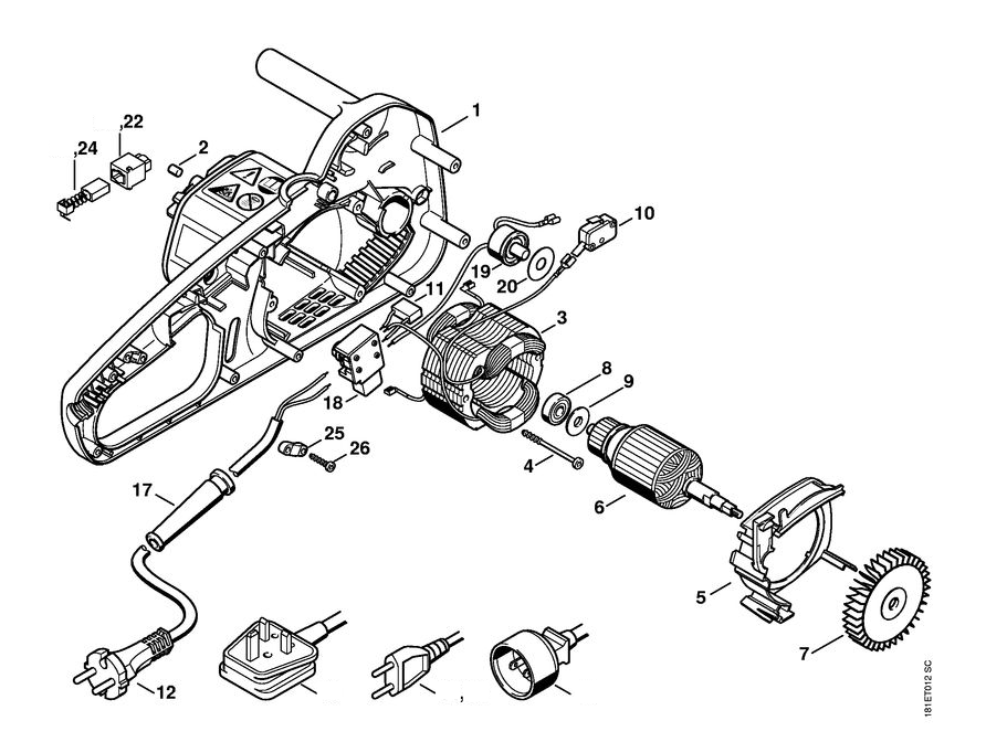 1 | Электродвигатель MSE 140 C, 160 C, 180 C | MSE 140 C-Q | Электропила STIHL | Запчасти по России | Сервисное обслуживание