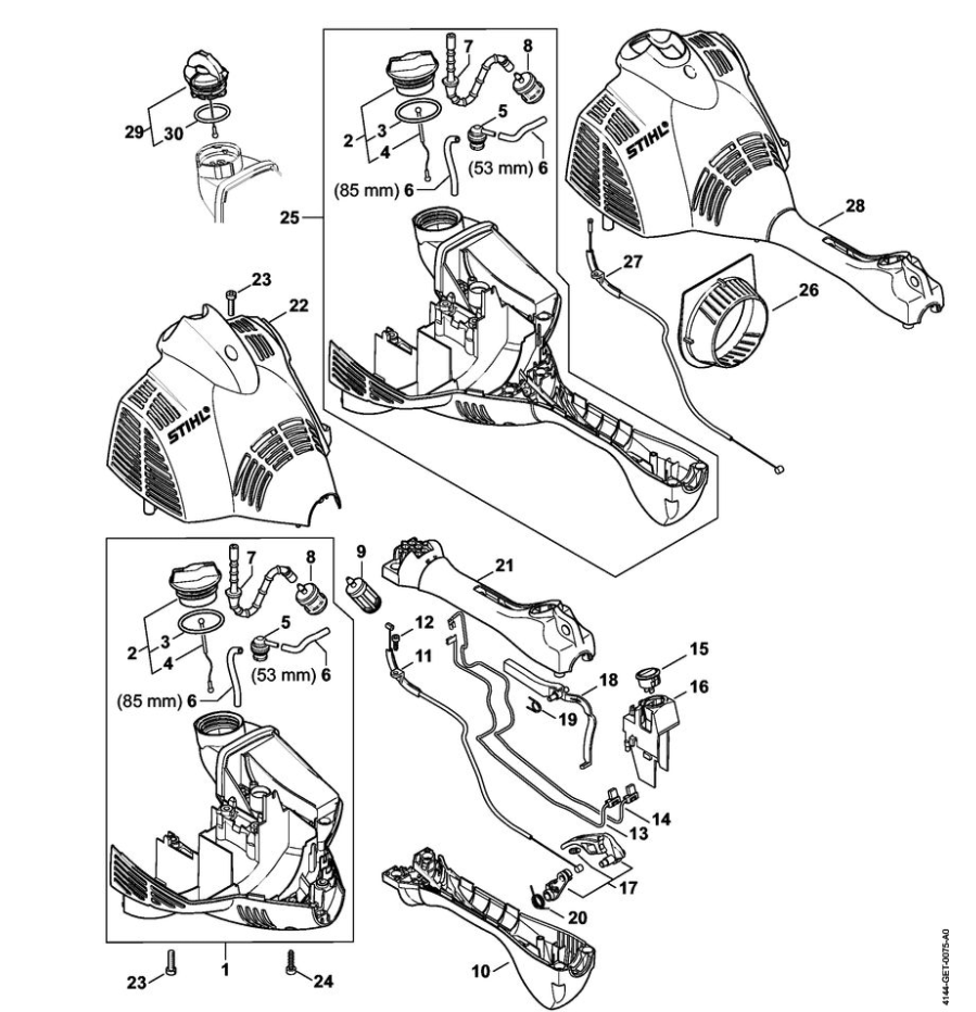 9 | FS 40: Хвостовик - Рукоятка с хомутиком | FS 40 | Мотокоса STIHL | Запчасти по России | Сервисное обслуживание