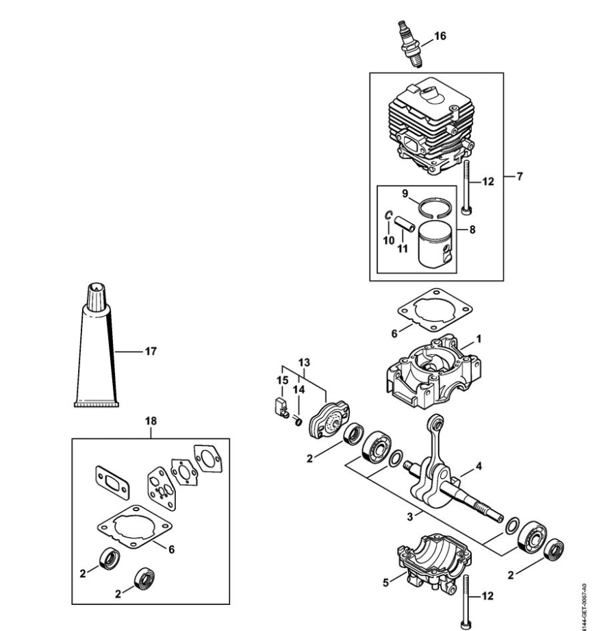 1 | Картер - Цилиндр | FS 40 | Мотокоса STIHL | Запчасти по России | Сервисное обслуживание