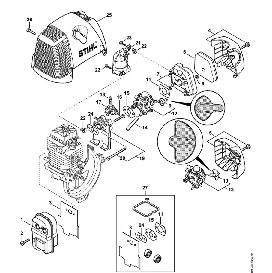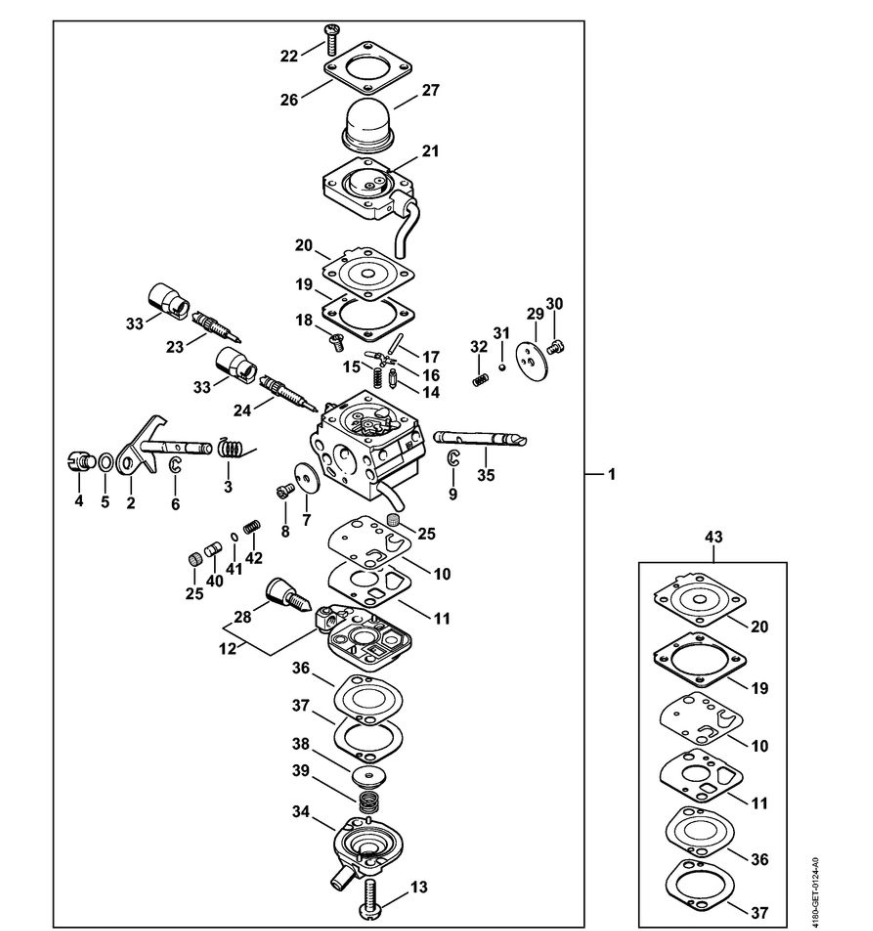 7 | Карбюратор C1Q-S174, C1Q-S131 | HL 90 K | Бензиновые ножницы STIHL | Запчасти по России | Сервисное обслуживание