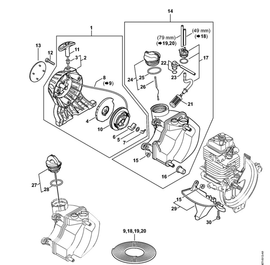 3 | Пусковое устройство, Топливный бак | HL 90 K | Бензиновые ножницы STIHL | Запчасти по России | Сервисное обслуживание