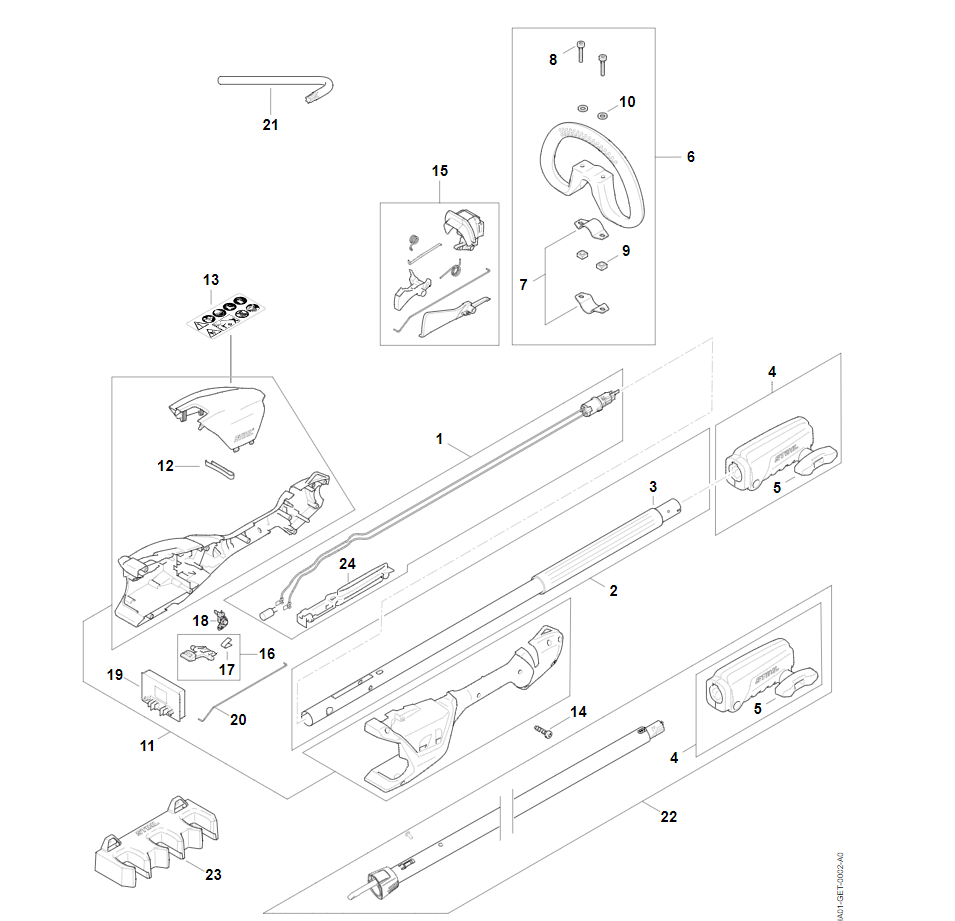 2 | Корпус рукоятки, Хвостовик | HLA 56 | Аккумуляторные секаторы STIHL | Запчасти по России | Сервисное обслуживание