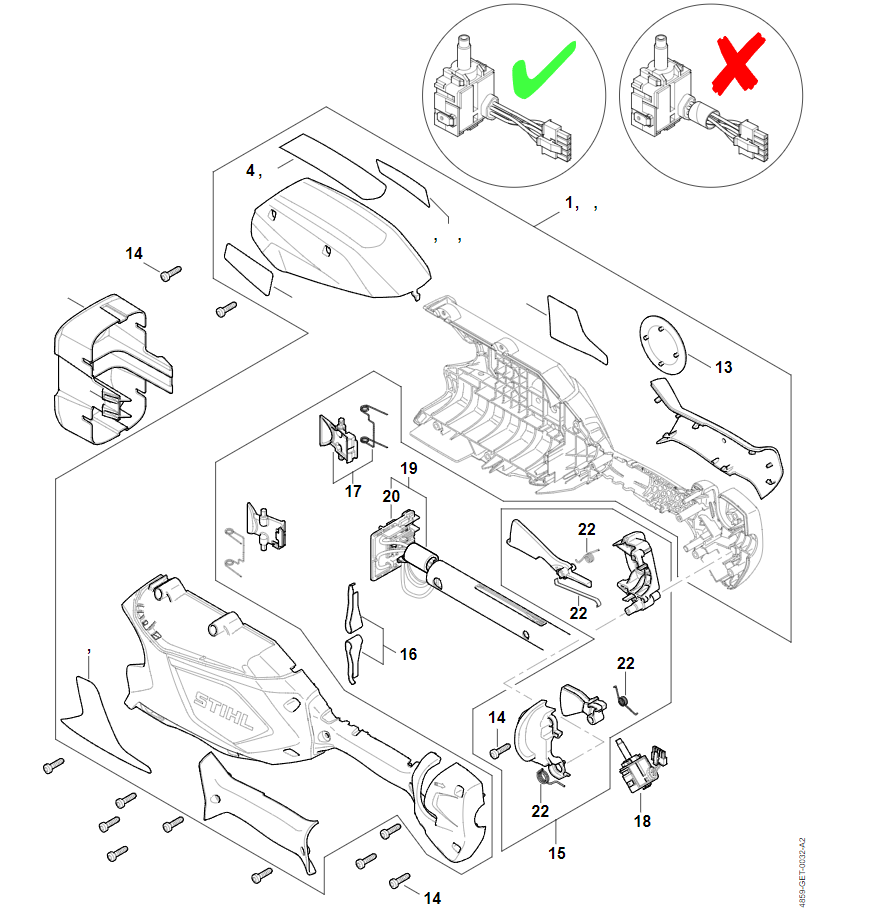 2 | Корпус рукоятки - Защитное прикрытие ⇤ после заводского номера 443397592 | HLA 66 | Аккумуляторные секаторы STIHL | Запчасти по России | Сервисное обслуживание