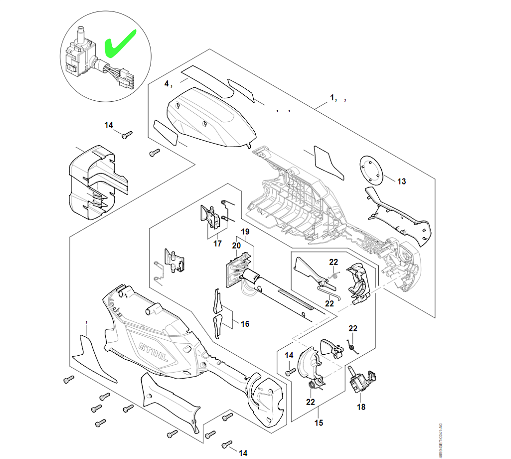 2 | Корпус рукоятки - Защитное прикрытие ⇤ после заводского номера 443397592 | HLA 66 | Аккумуляторные секаторы STIHL | Запчасти по России | Сервисное обслуживание