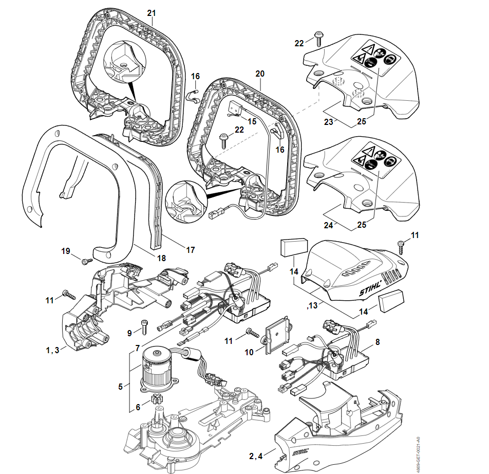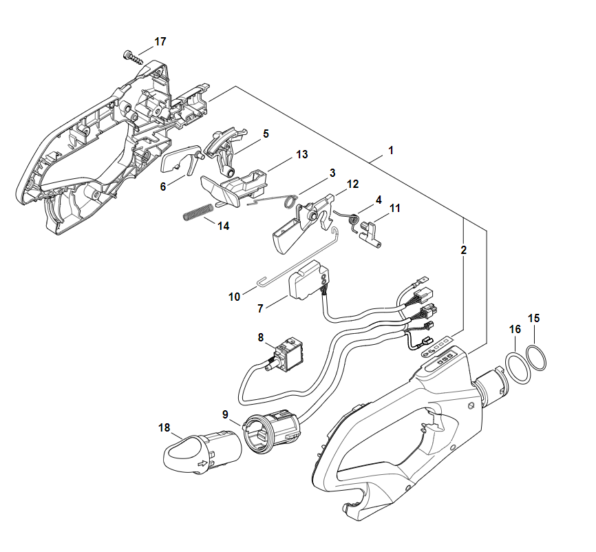 2 | Картер двигателя, Электронный модуль | HSA 94 T | Аккумуляторные ножницы STIHL | Запчасти по России | Сервисное обслуживание