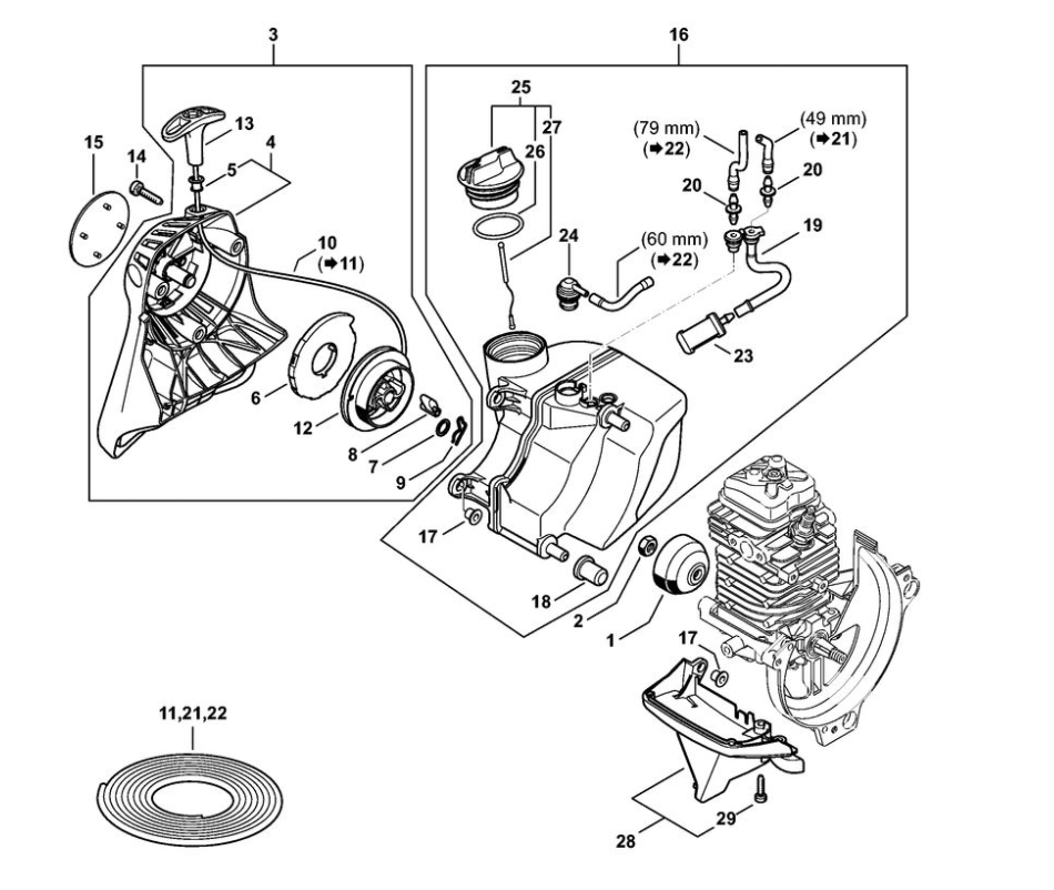 3 | Пусковое устройство, Топливный бак | HT 105 | Высоторез STIHL | Запчасти по России | Сервисное обслуживание