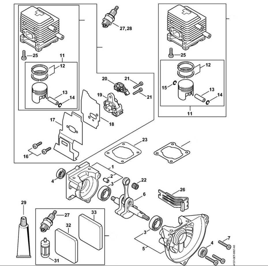1 | Картер - Цилиндр | HT 70 | Высоторез STIHL | Запчасти по России | Сервисное обслуживание