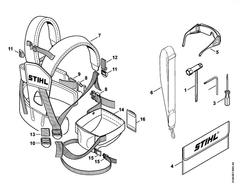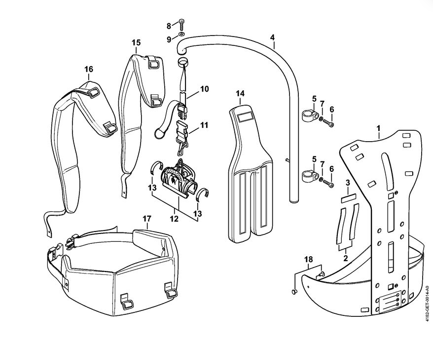18 | Система для ношения заплечных агрегатов RTS | HT 70 | Высоторез STIHL | Запчасти по России | Сервисное обслуживание