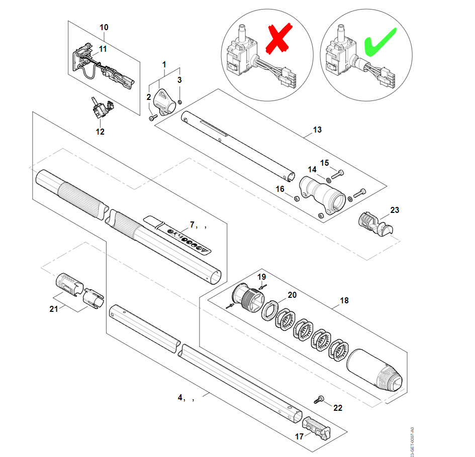 3 | Хвостовик после серийного номера ⇤ 443442002 | HTA 86 | Аккумуляторный высоторез STIHL | Запчасти по России | Сервисное обслуживание