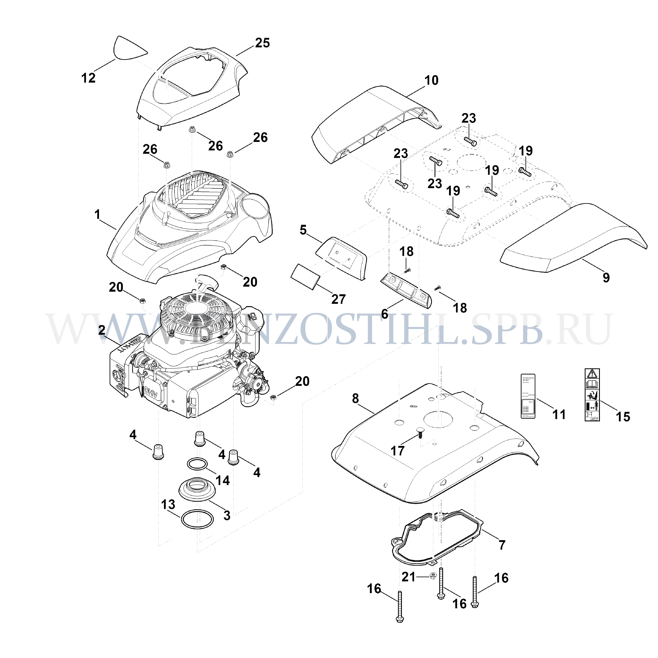 Культиваторы (Stihl) MH MH 560.0 Кожух, двигатель