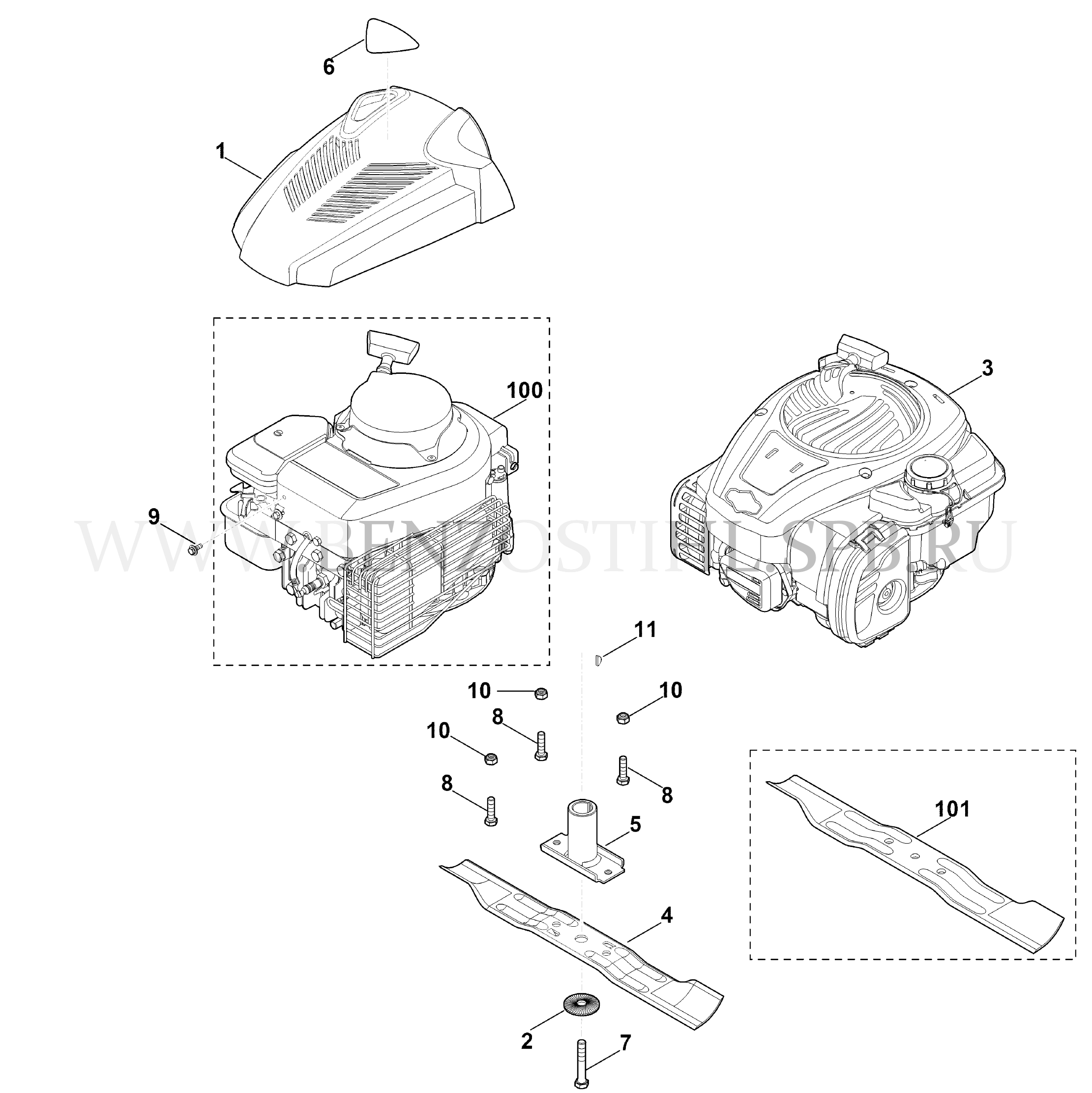 VIKING Газонокосилка MB MB 248.2 Двигатель, нож