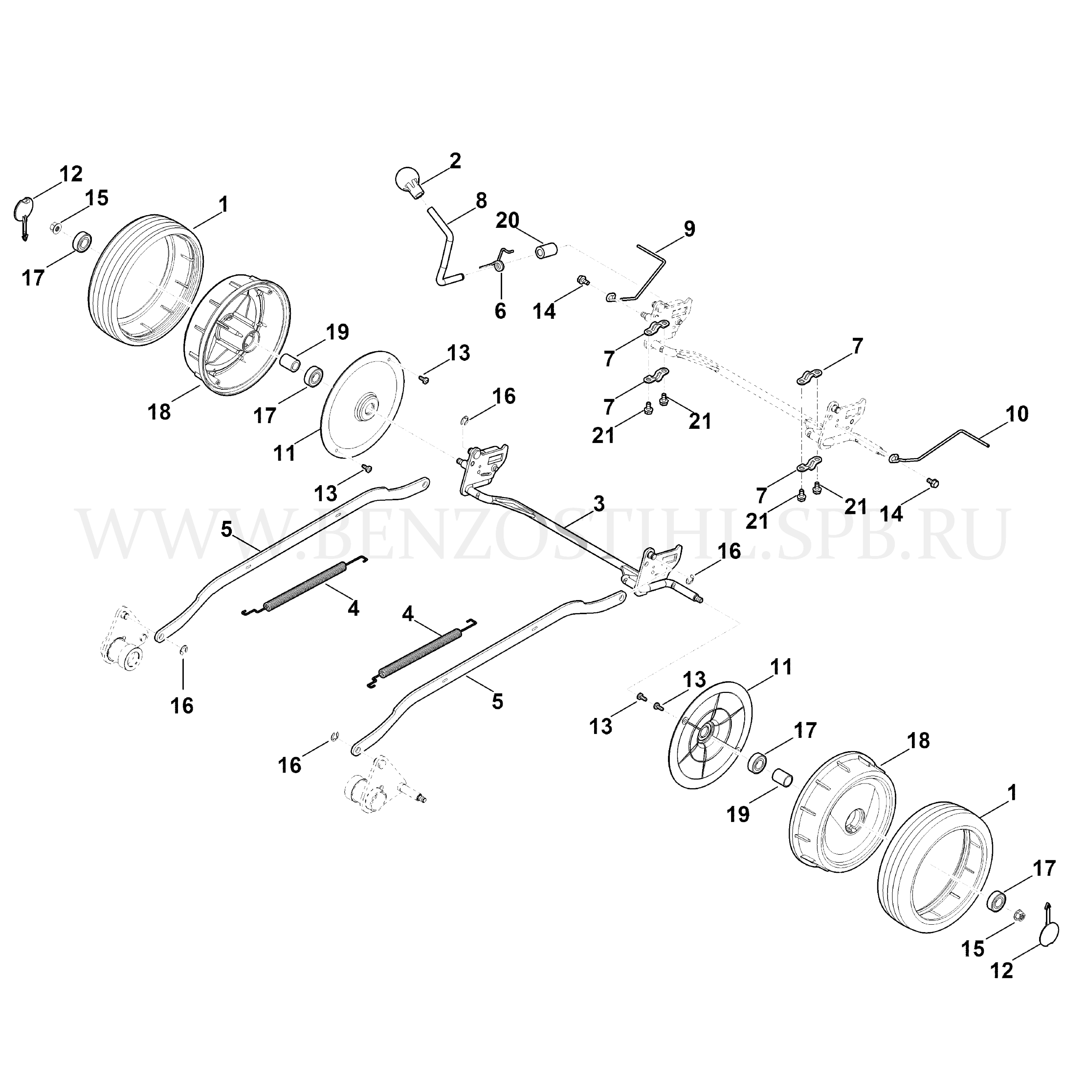 VIKING Газонокосилка MB MB 4.1 RTP Задняя ось, регулировка высоты срезания