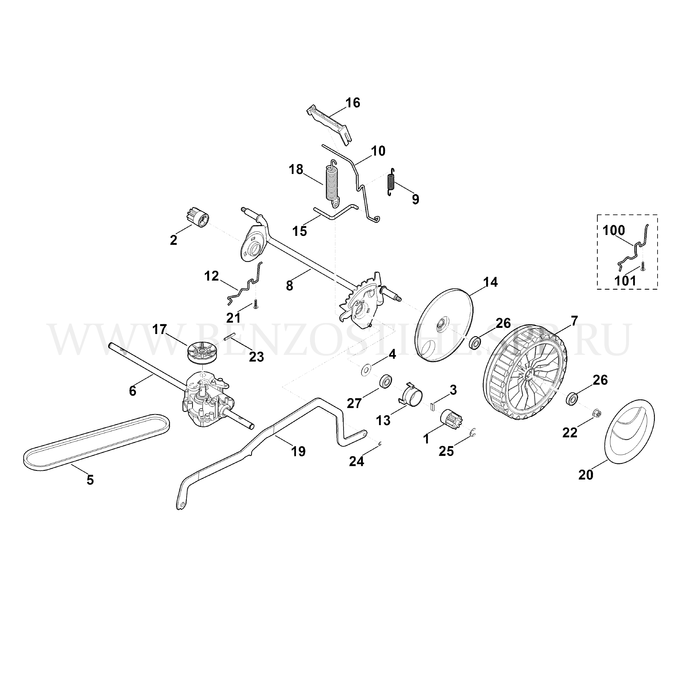 VIKING Газонокосилка MB MB 443.1 T Задняя ось, регулировка высоты срезания