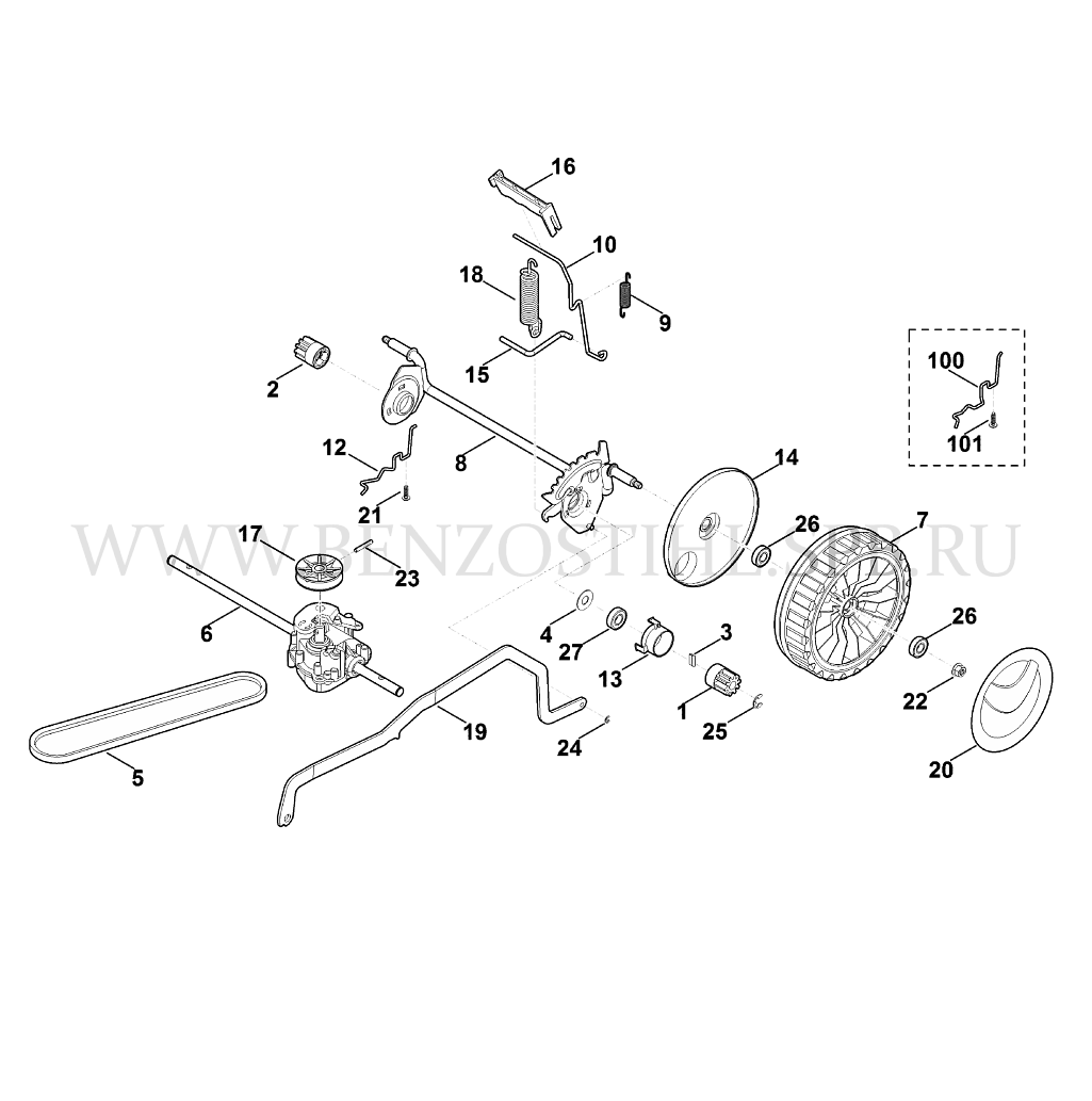VIKING  Газонокосилка  MB  MB 448.1 TC  Задняя ось, регулировка высоты срезания
