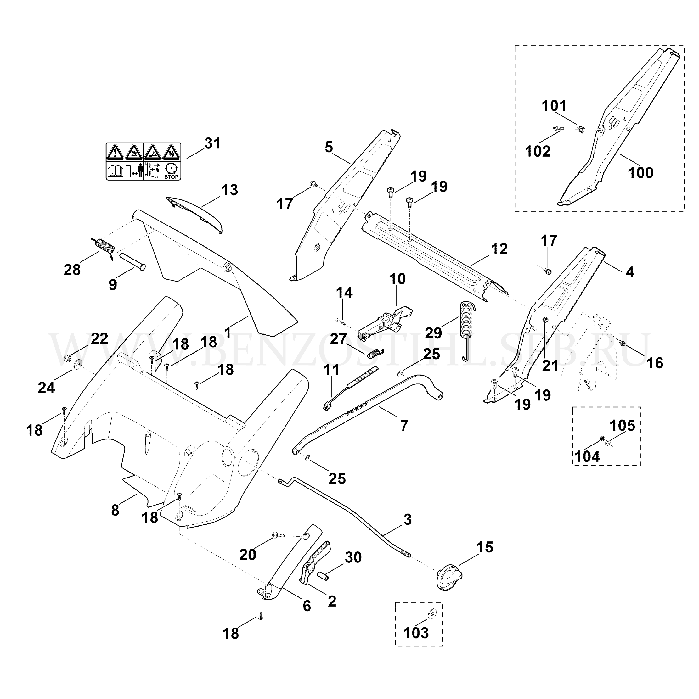 1 VIKING Газонокосилка MB MB 545.0 V Нижняя часть ведущей ручки