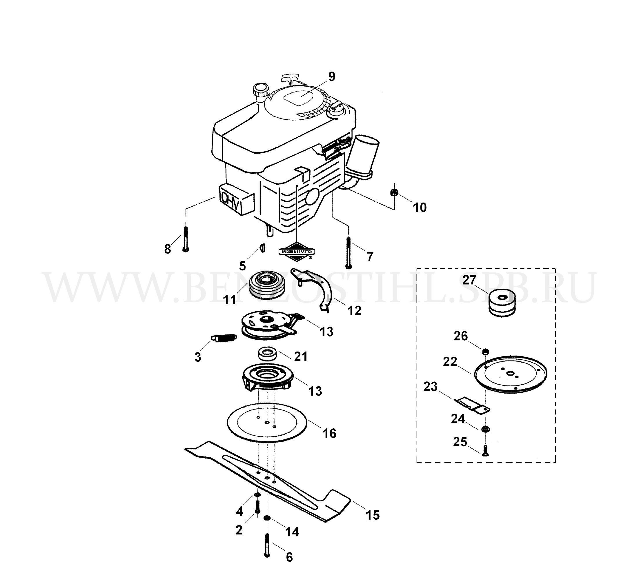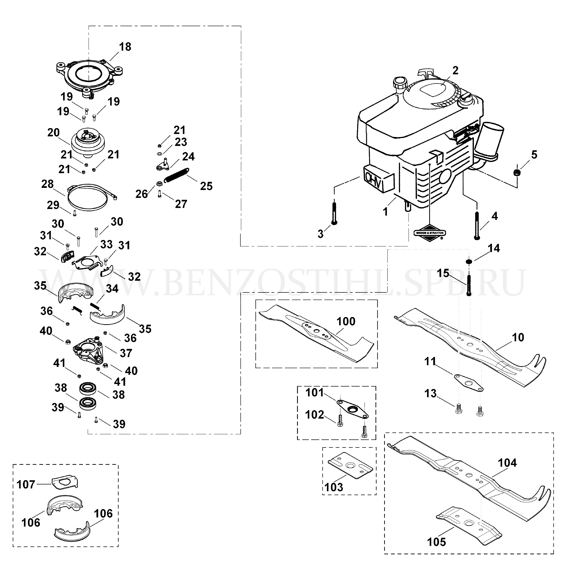 1 VIKING Газонокосилка MB MB 555 PRO Двигатель, нож