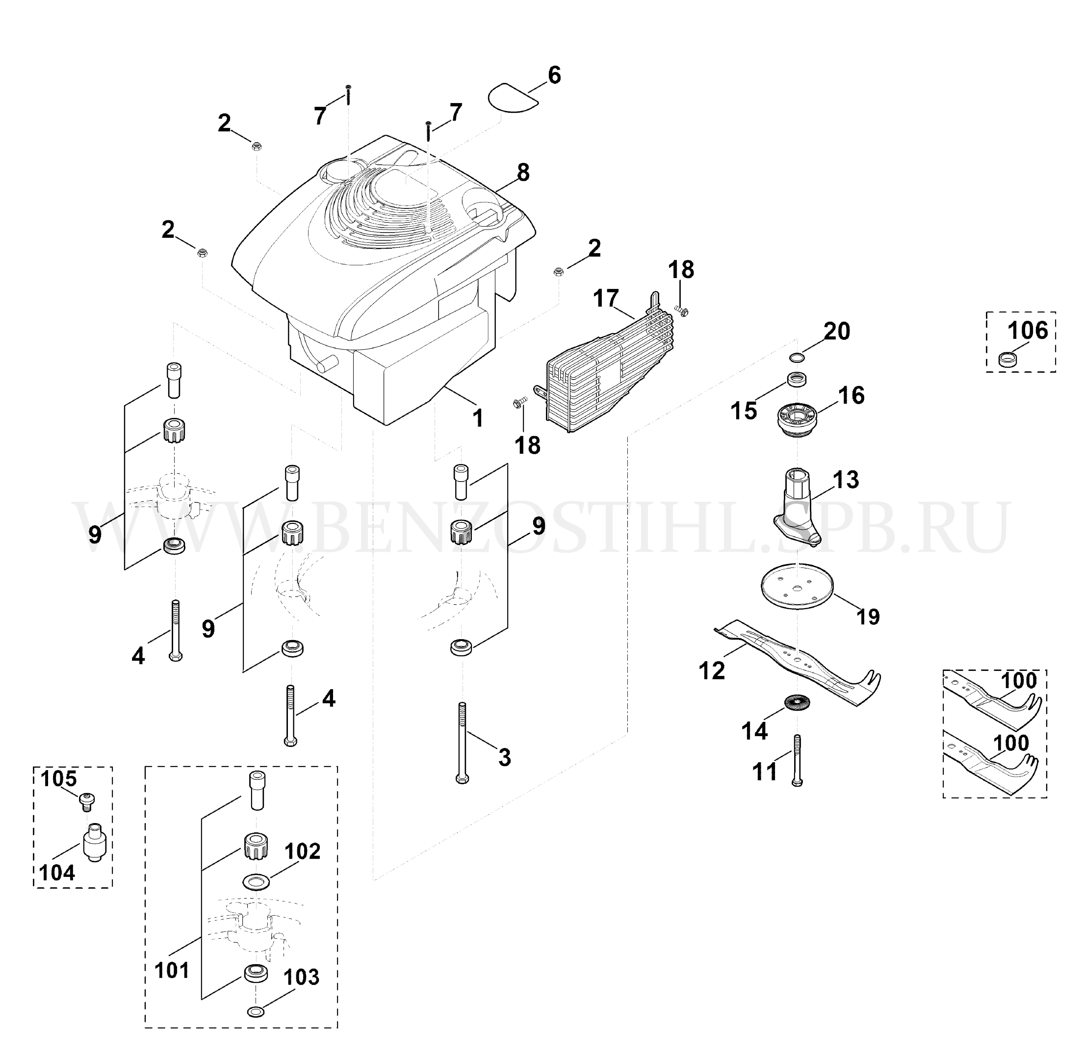 9 VIKING Газонокосилка MB MB 650.0 VE Двигатель, нож