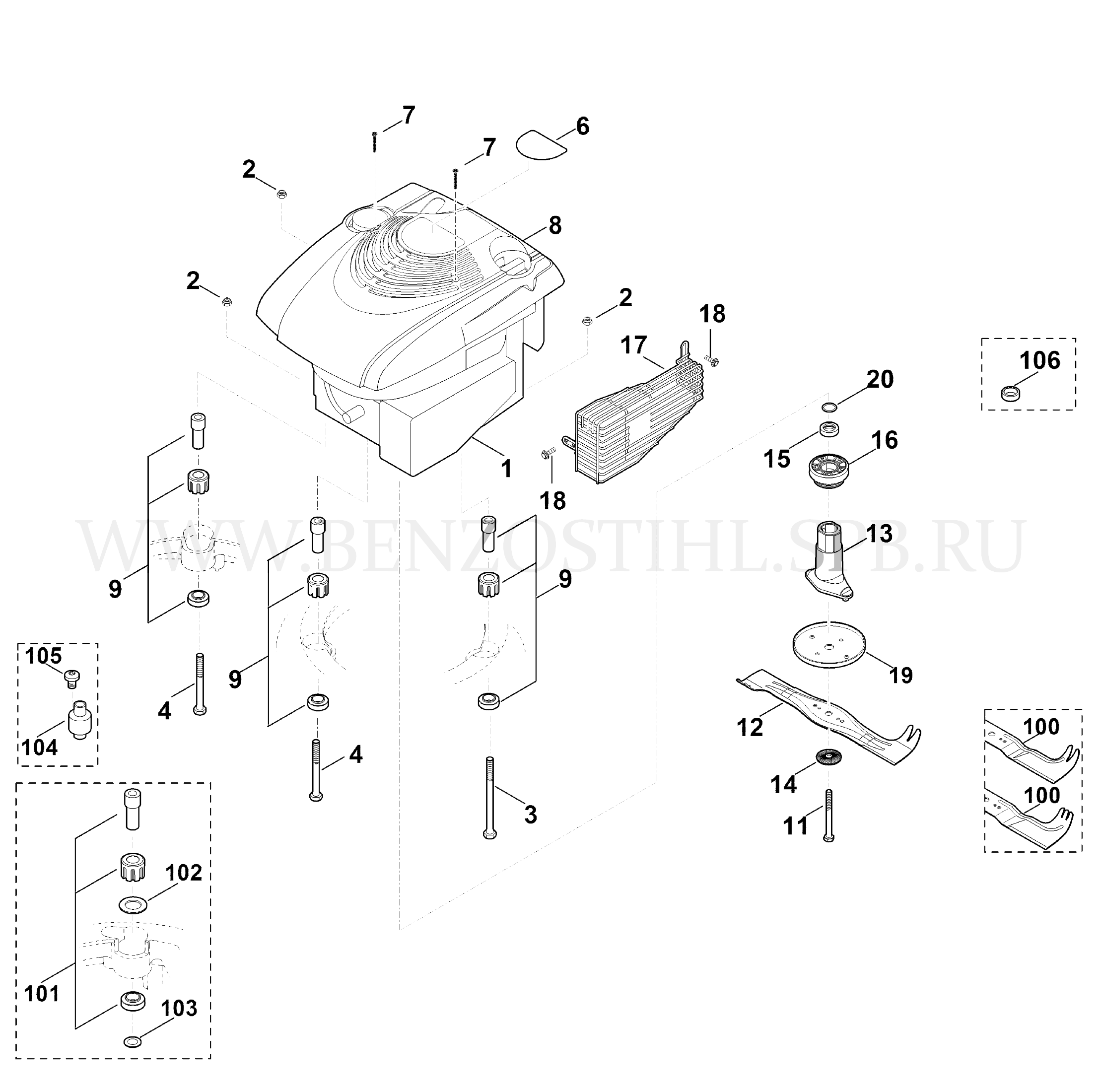 9 VIKING Газонокосилка MB MB 650.0 VR Двигатель, нож