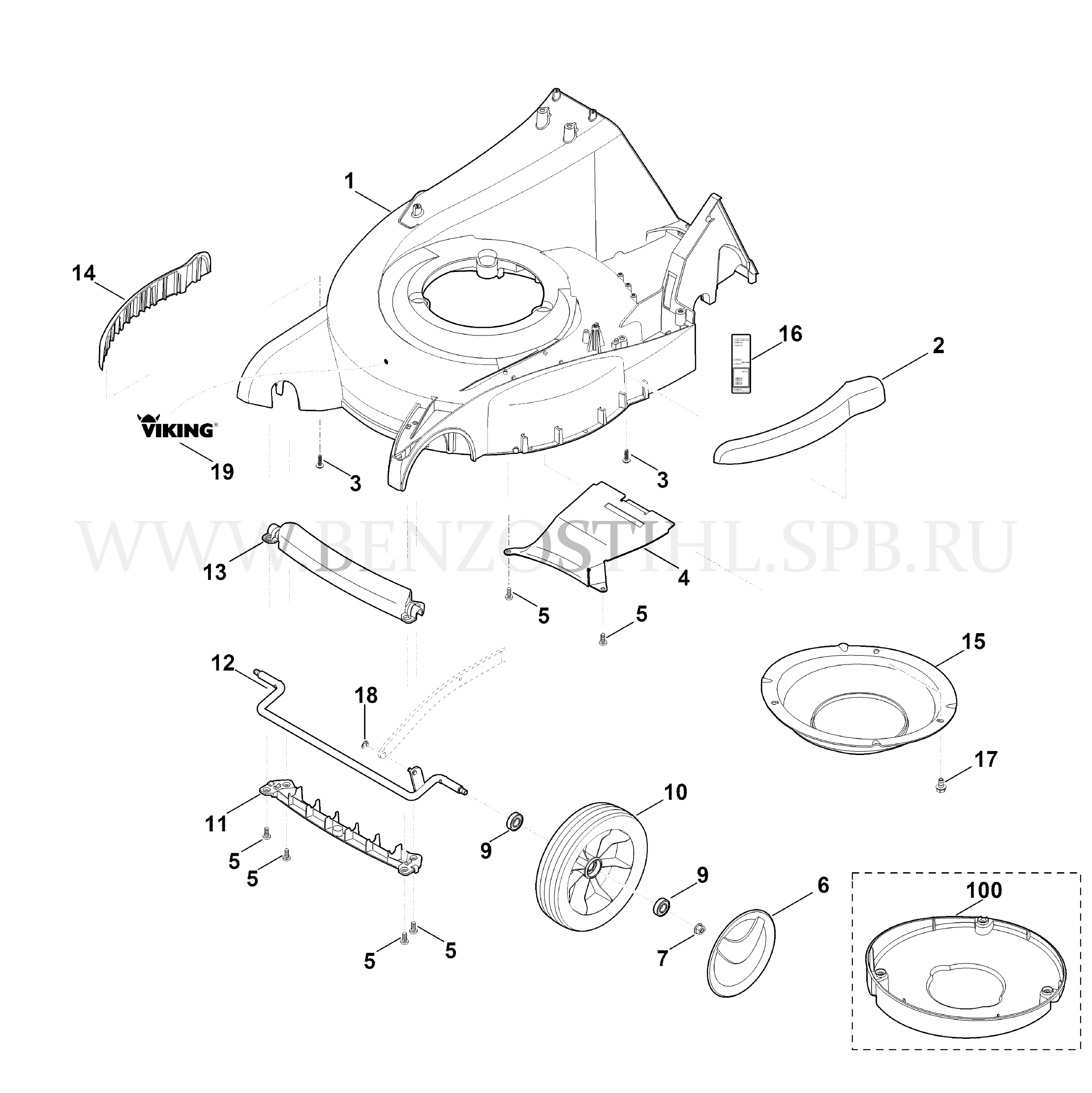 7 VIKING Газонокосилка MB MB 650.0 / VS Корпус, передняя ось