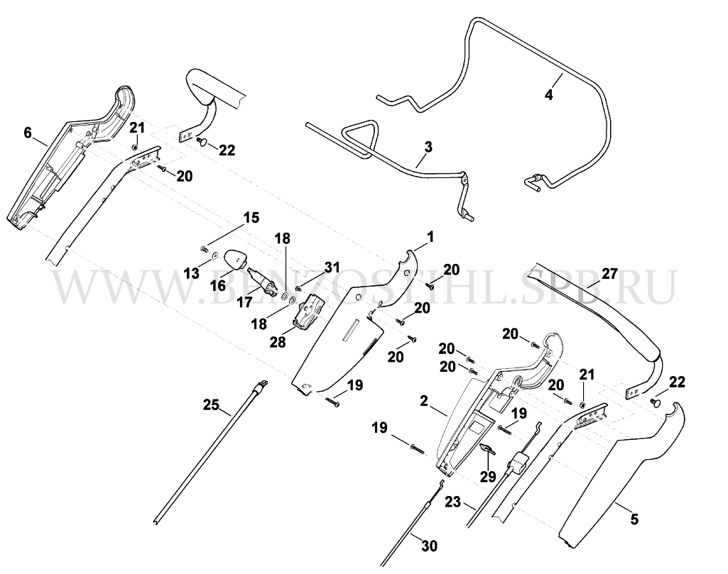 Газонокосилка  MB  MB 655.0 V  Верхняя часть ведущей ручки