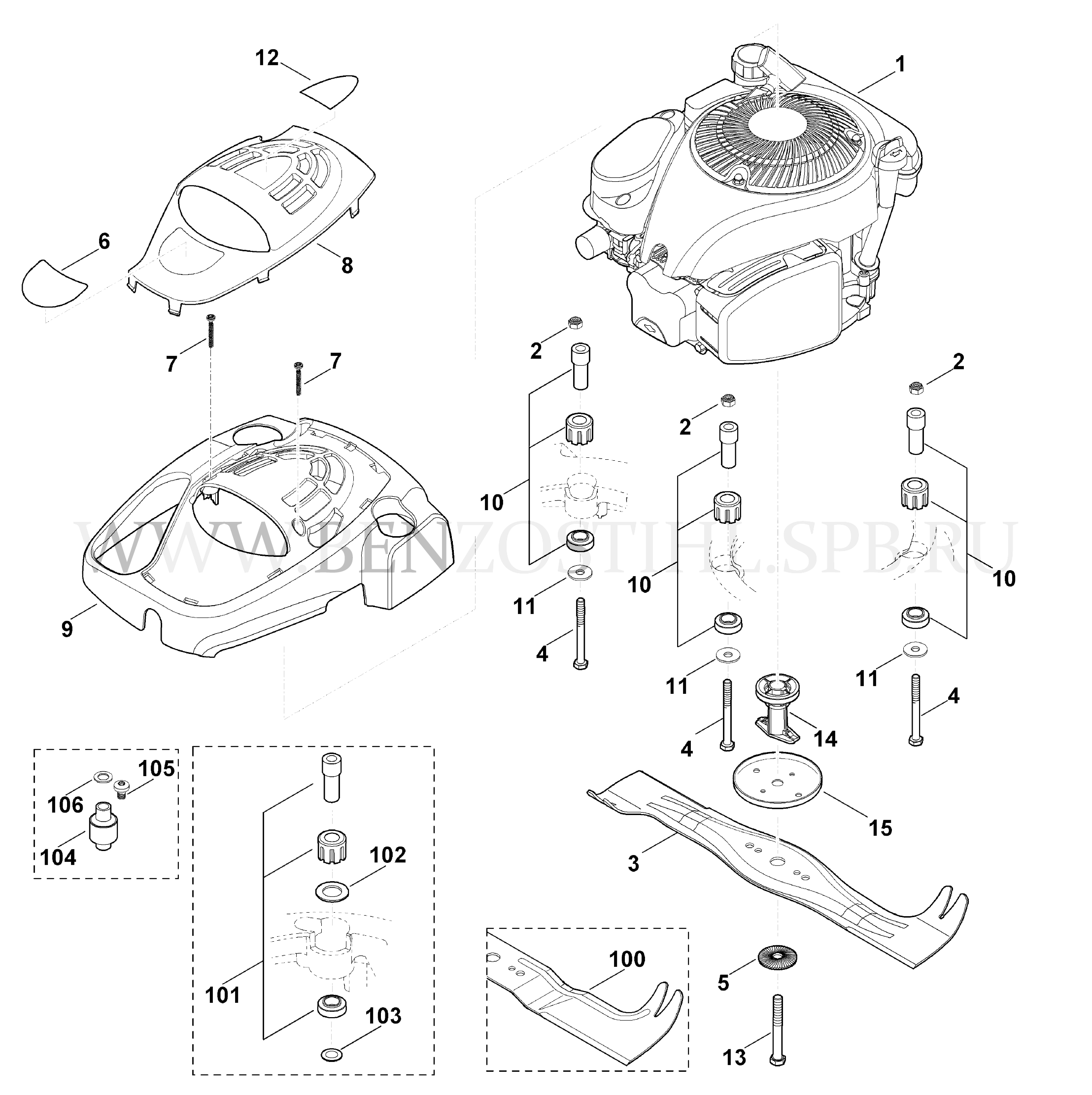 11 VIKING Газонокосилка MB MB 655.1 G Двигатель, нож