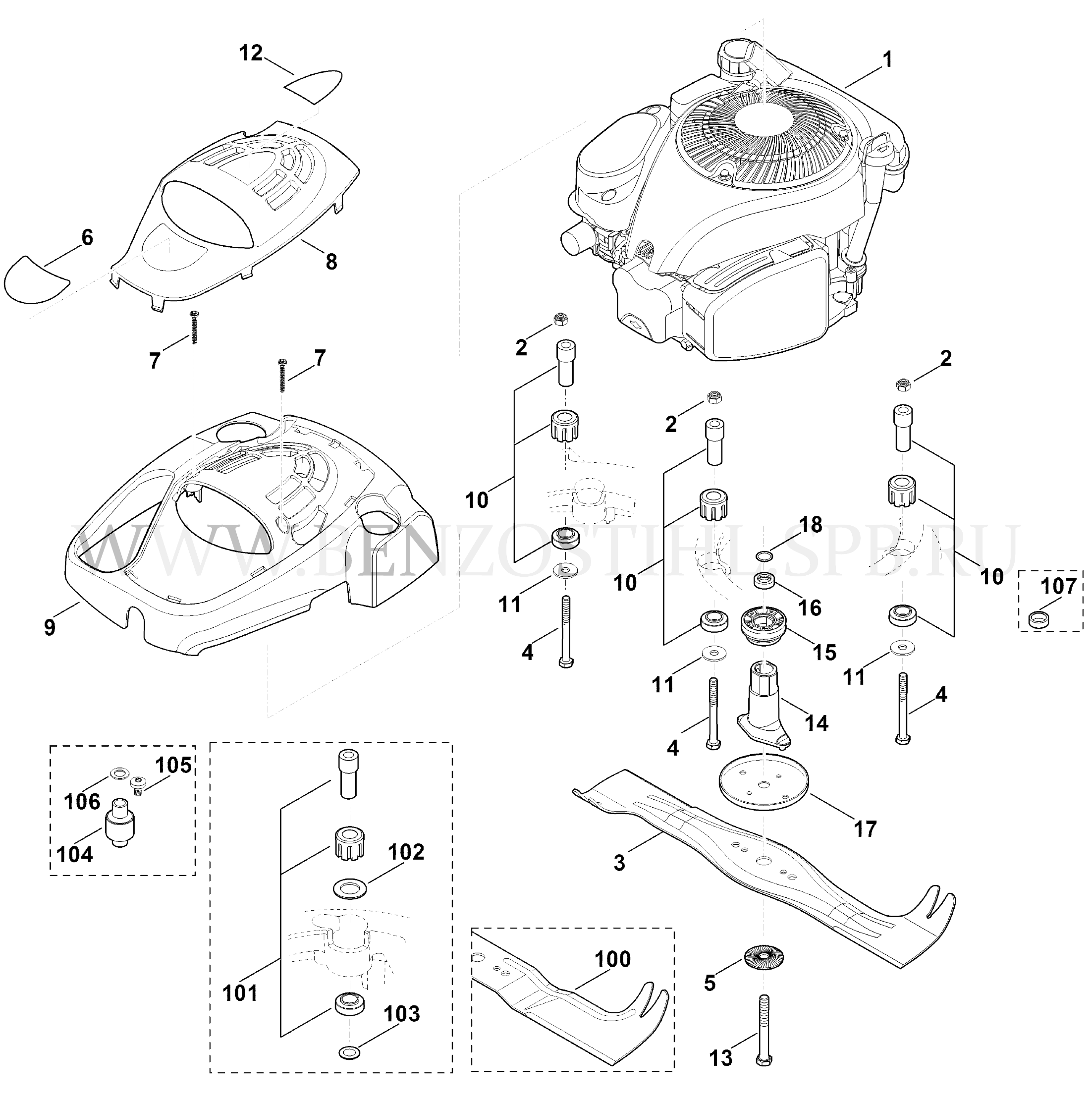 9 VIKING Газонокосилка MB MB 655.1 V Двигатель, нож