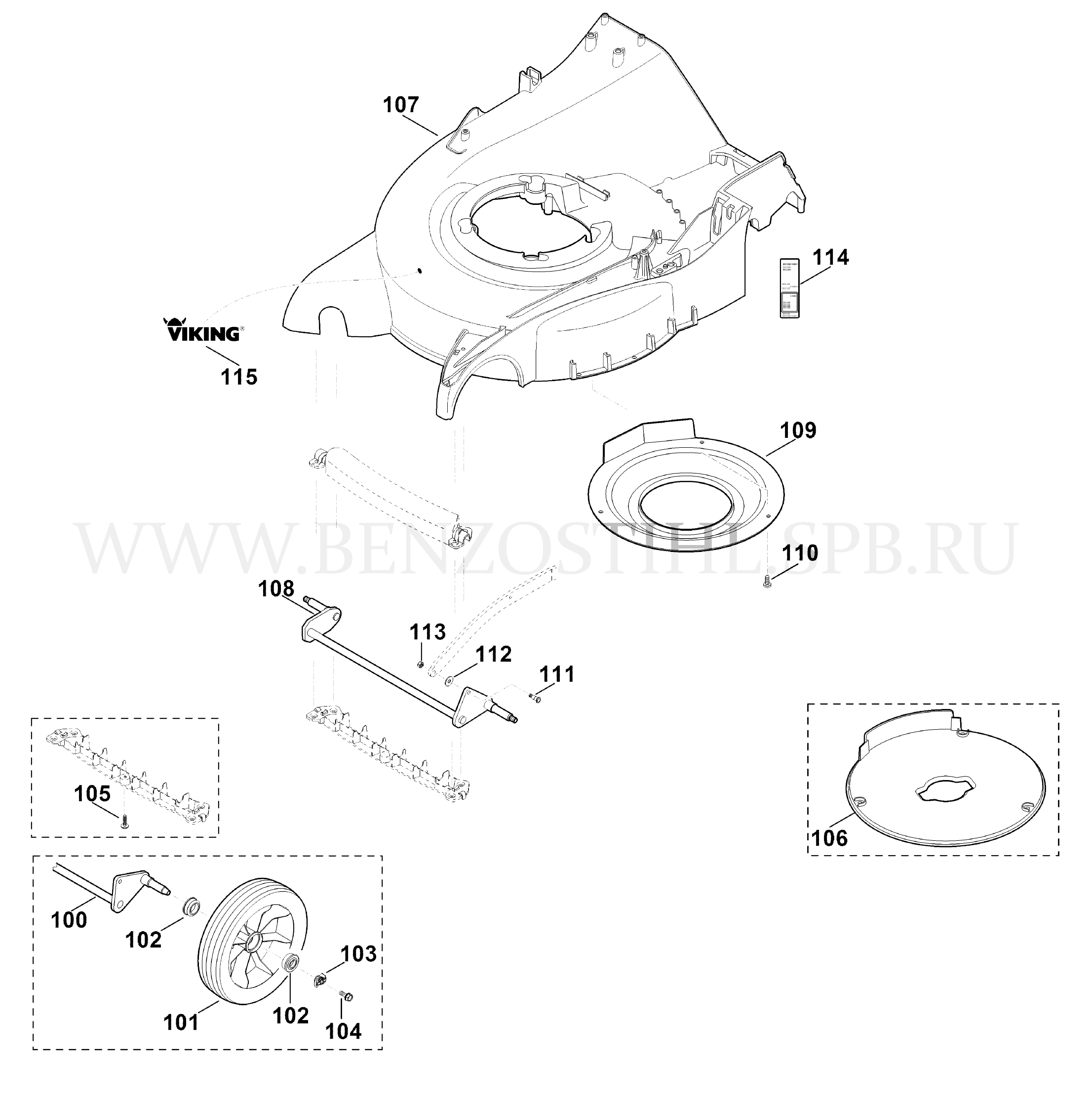 7 VIKING Газонокосилка MB MB 655.1 VM Корпус, передняя ось