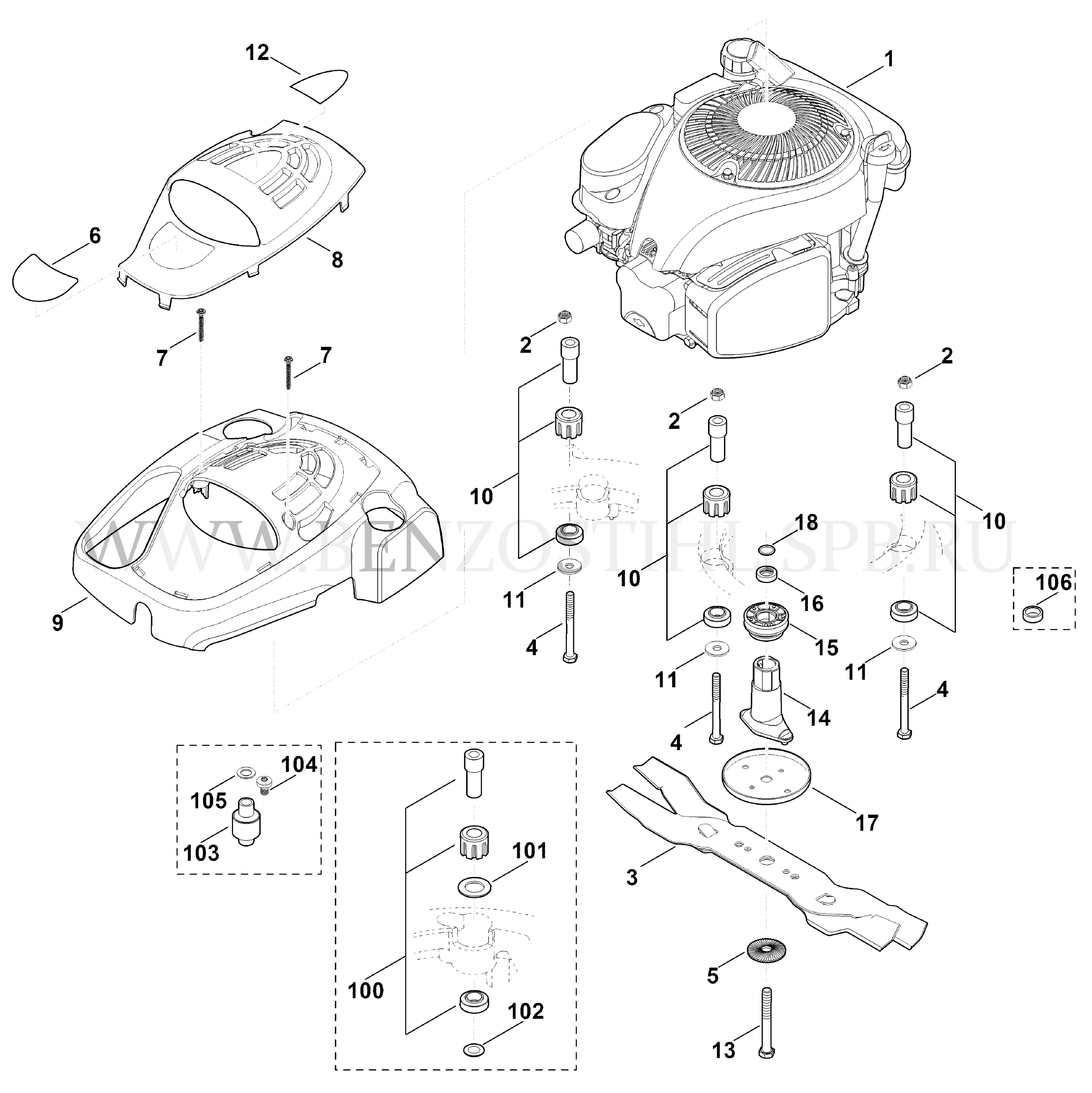 9 VIKING Газонокосилка MB MB 655.1 VM Двигатель, нож