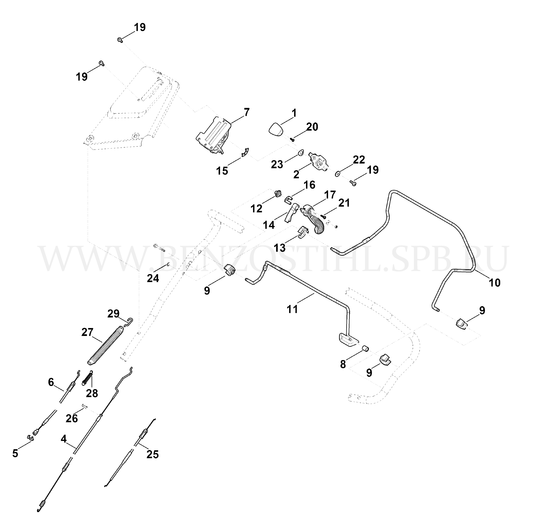 VIKING Газонокосилка MB MB 655.3 RS Нижняя часть ведущей ручки