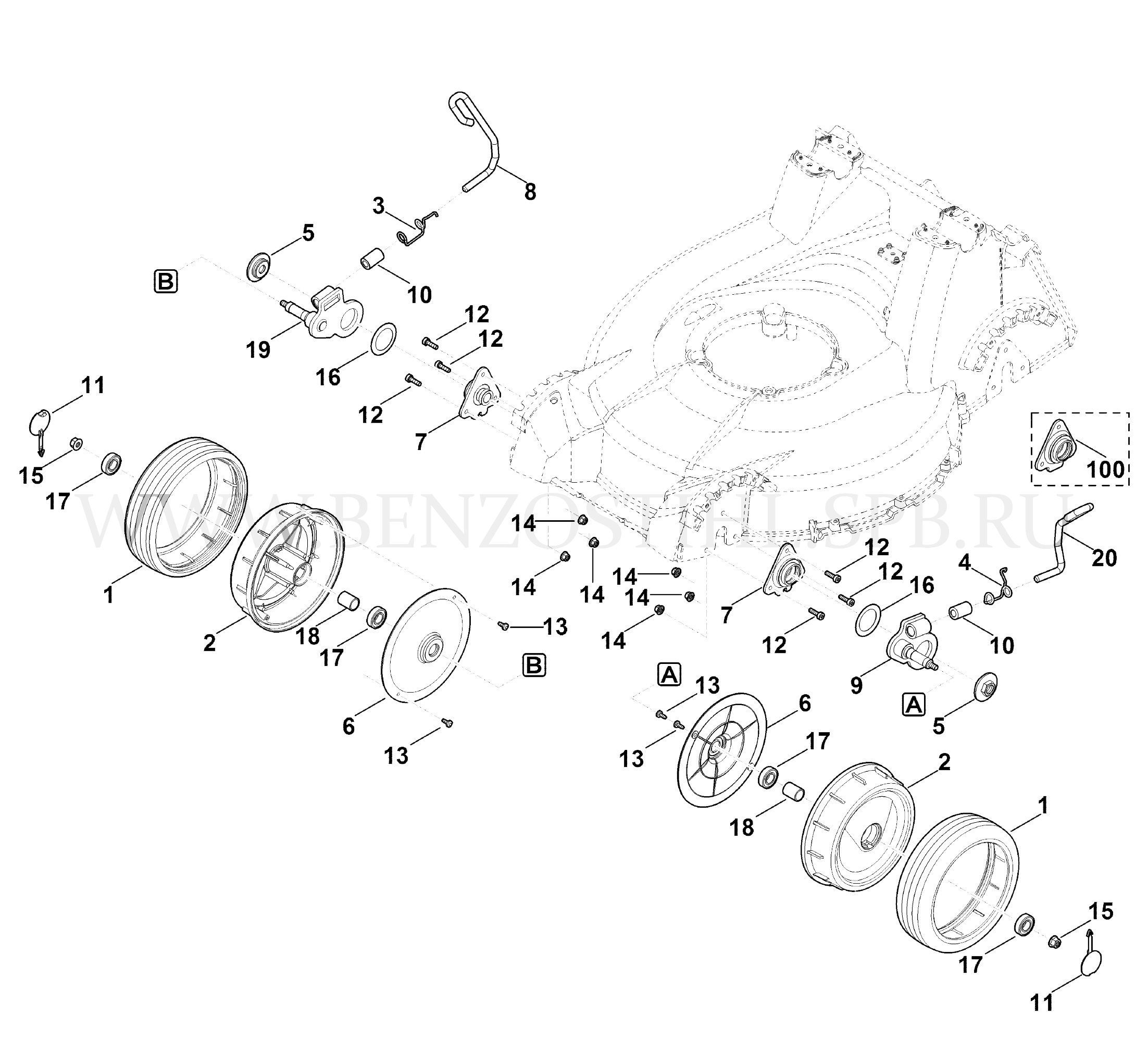 VIKING Газонокосилка MB MB 756.0 GS Регулировка высоты скашивания спереди, переднее колесо