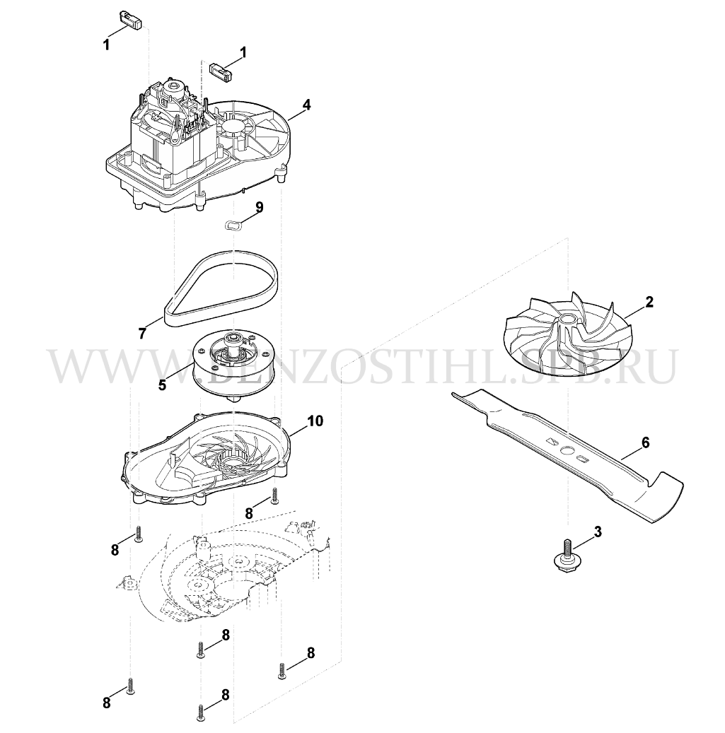 VIKING  Газонокосилка  ME  ME 339.0  Двигатель, нож