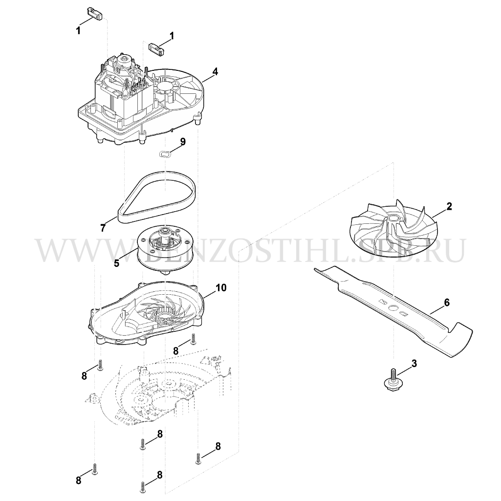 VIKING  Газонокосилка  ME  ME 339.1 C  Двигатель, нож