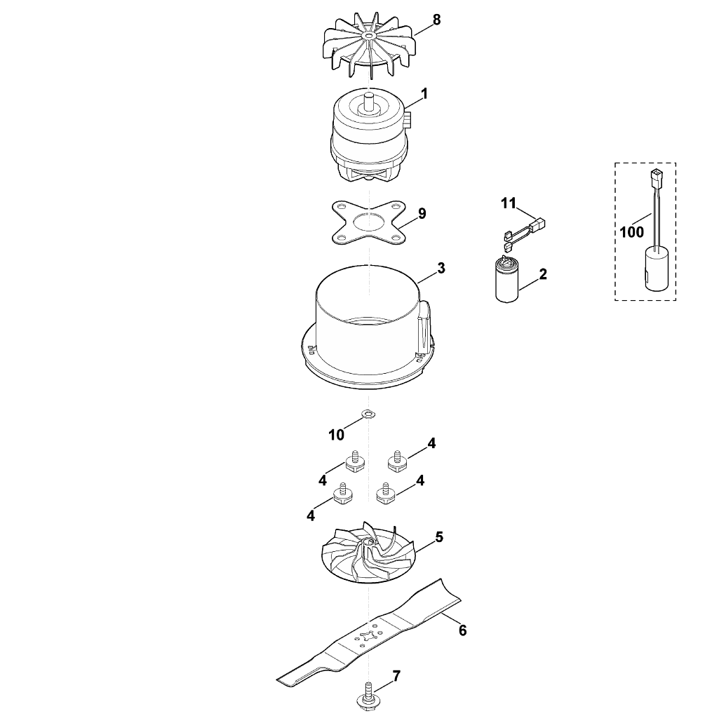 VIKING  Газонокосилка  ME  ME 443.0 C  Двигатель, нож
