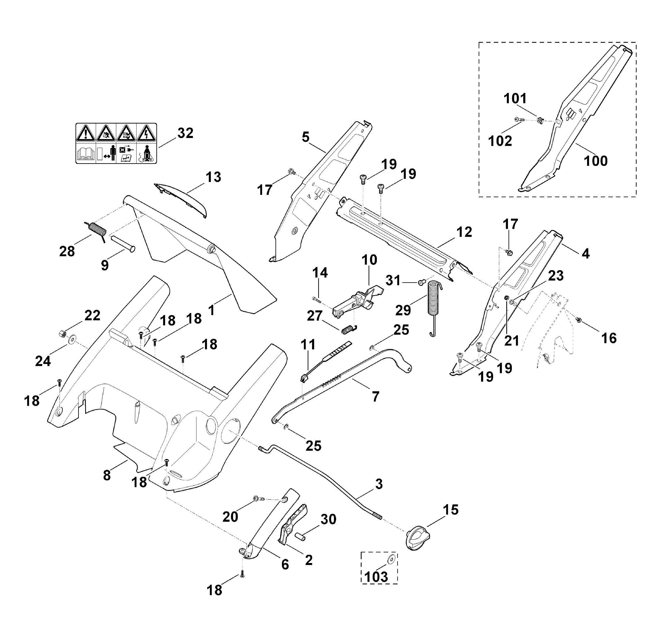 4 VIKING Газонокосилка ME ME 545.0 Рама, регулировка высоты