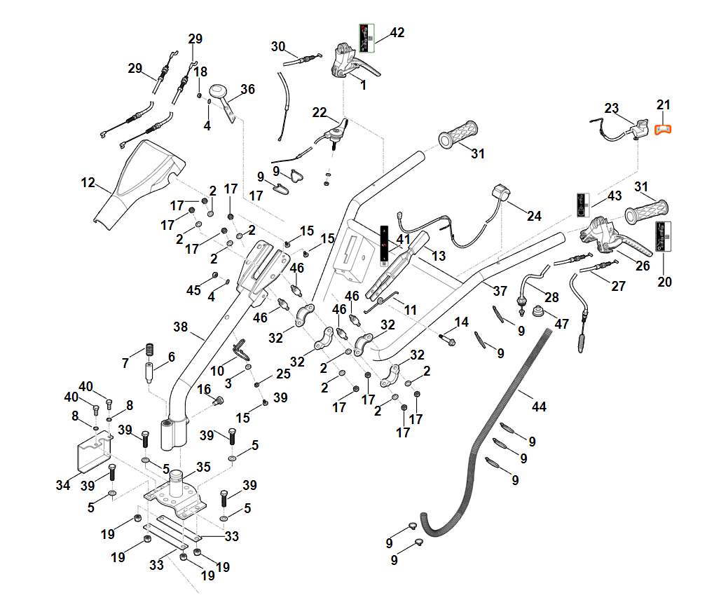 1 | A - Руль | MH 700.1 |Культиватор STIHL | Запчасти по России | Сервисное обслуживание
