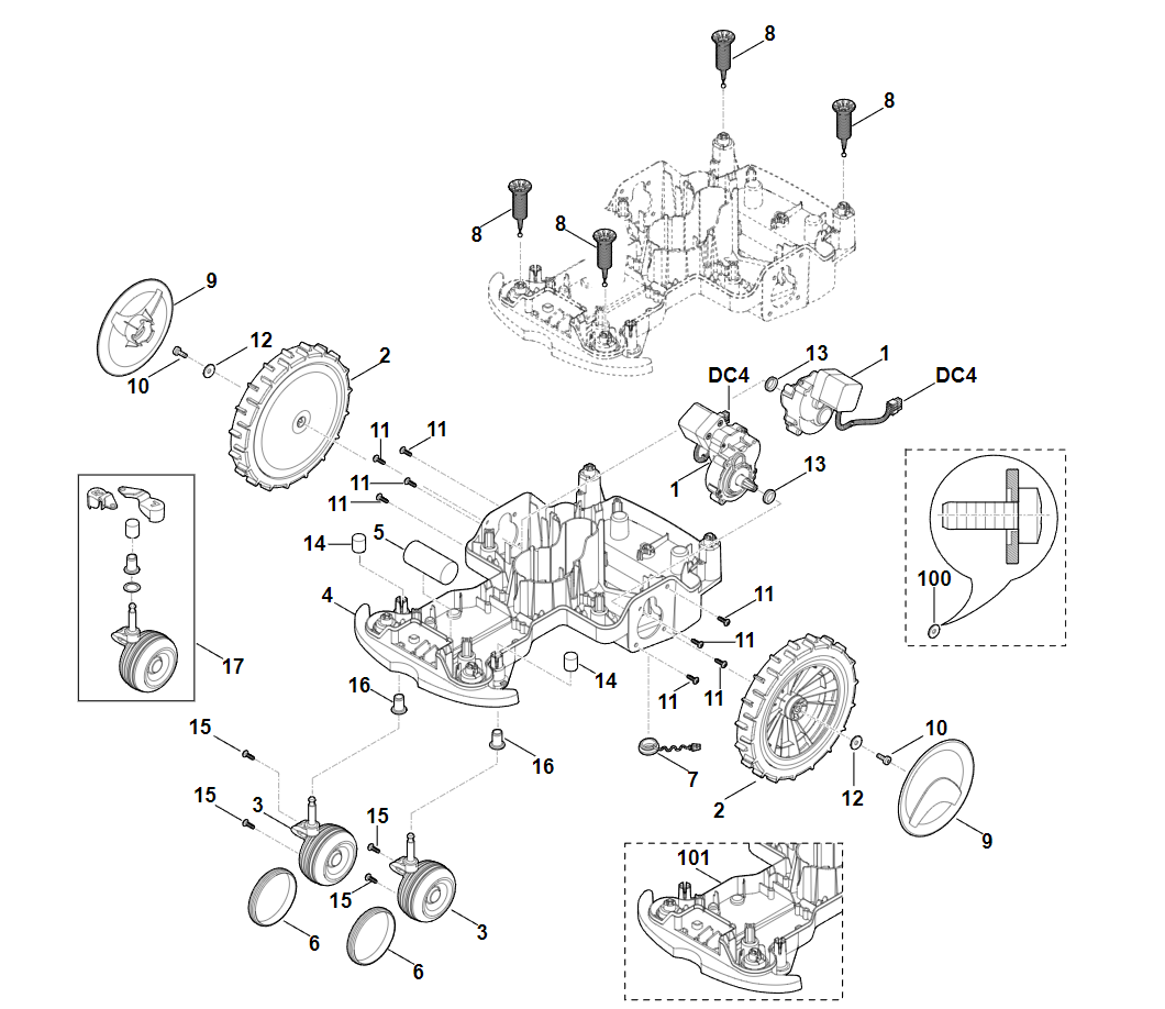 3 | C - Нижняя часть корпуса, ходовая часть | Робот-газонокосилка MI 422.0 | Запчасти по России | Ремонт