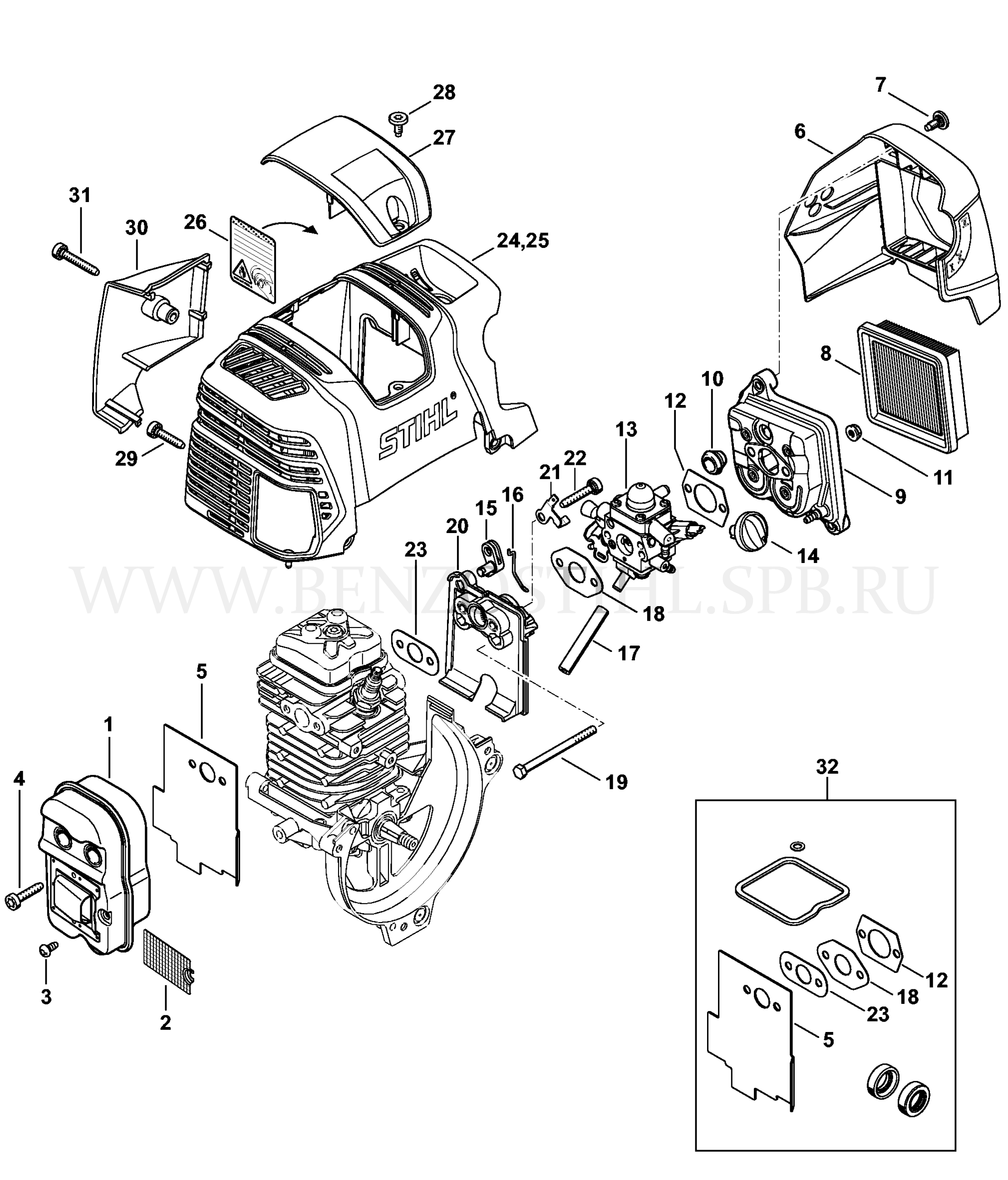 BT 131 Глушитель - Воздушный фильтр - Карбюратор
