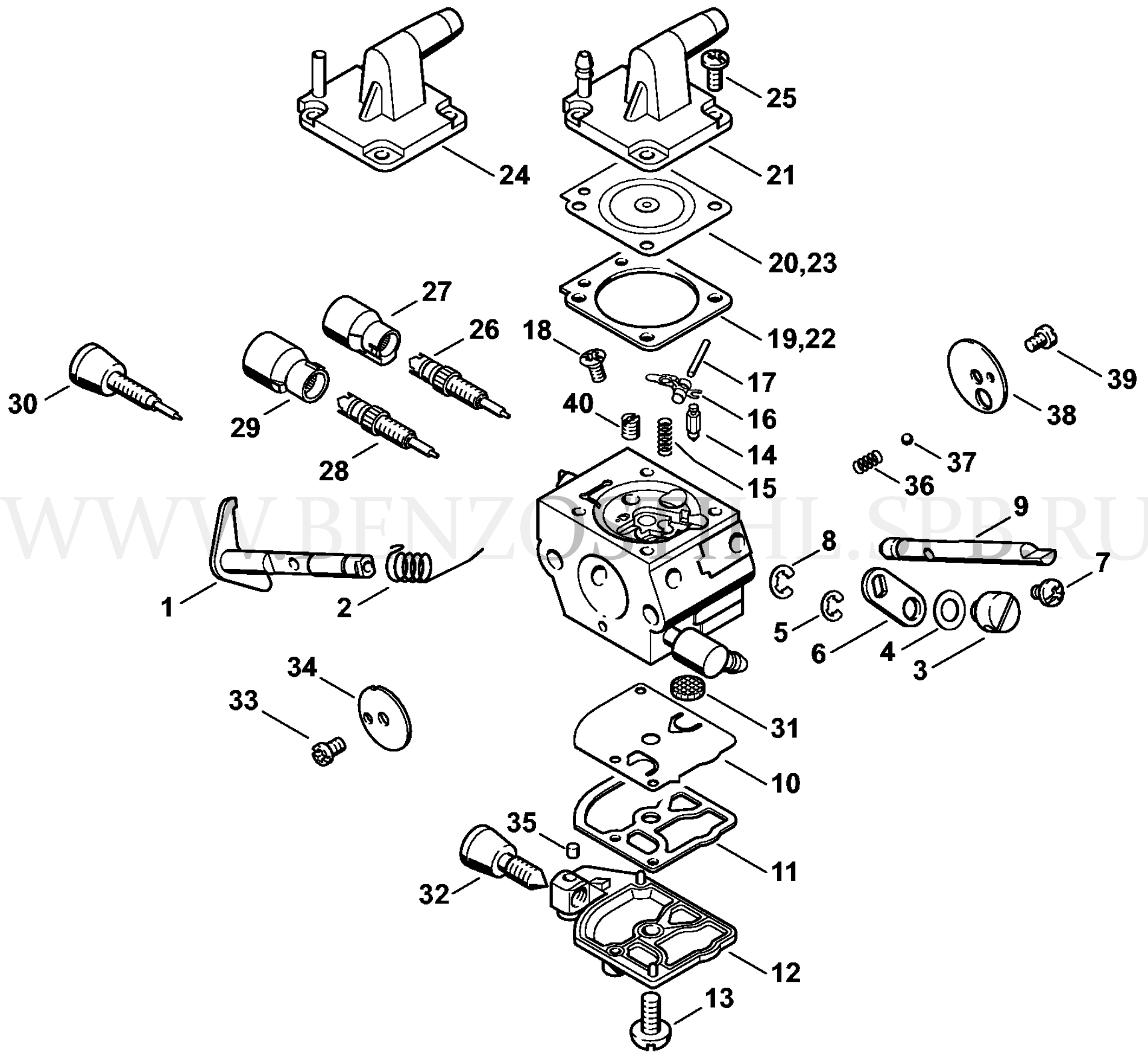 Корпус карбюратора - Воздушный фильтр - Карбюратор