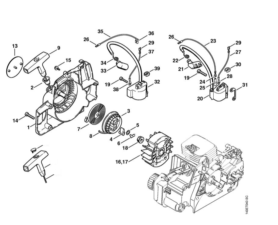 3 | Пусковое устройство - Система зажигания | MS 017 | Бензопила STIHL | Запчасти по России | Сервисное обслуживание