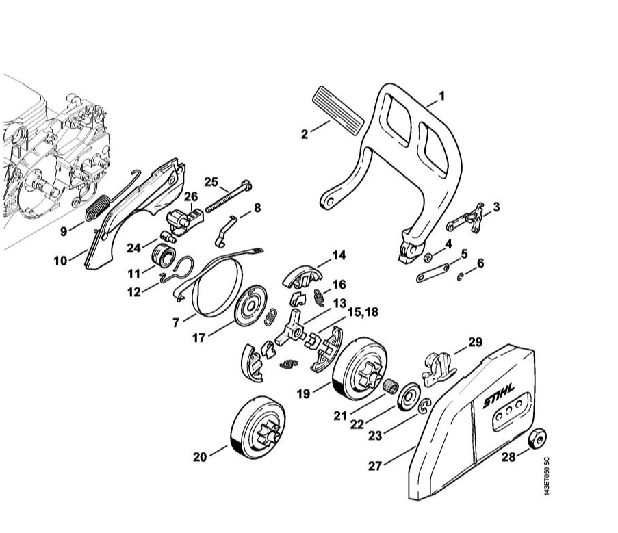 4 | Устройство для защиты рук - Тормоз пильной цепи | MS 017 | Бензопила STIHL | Запчасти по России | Сервисное обслуживание