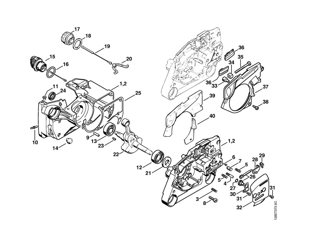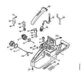 1 | Картер - Натяжное устройство цепи | 034 | Бензопила STIHL | Запчасти по России | Сервисное обслуживание