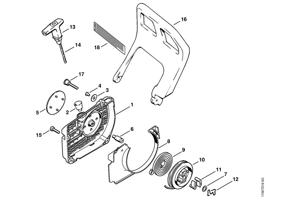 7 | Пусковое устройство | 034 | Бензопила STIHL | Запчасти по России | Сервисное обслуживание