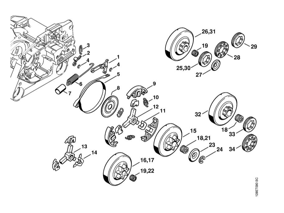 5 | Тормоз пильной цепи - Муфта | 034 | Бензопила STIHL | Запчасти по России | Сервисное обслуживание