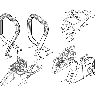 16 | Крышка цепной звёздочки - Трубчатая рукоятка | 034 | Бензопила STIHL | Запчасти по России | Сервисное обслуживание