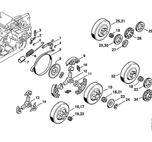 5 | Тормоз пильной цепи - Муфта | 034 | Бензопила STIHL | Запчасти по России | Сервисное обслуживание