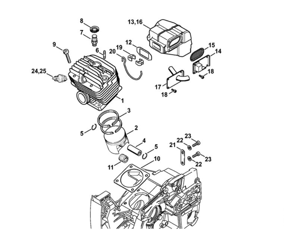 2 | Цилиндр - Шумоглушитель | 088 | Бензопила STIHL | Запчасти по России | Сервисное обслуживание